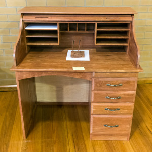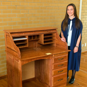 I constructed a roll top desk for my Year 12 Industrial Technology Timber and Furnishing class in 2015. It will be the focal point of the home office, as well as being attractive and well-crafted as it displays its panel sides and rolled top section. This project was constructed after admiring an old-styled roll top desk in my grandparents’ home for many years; I have incorporated its unique style of appearance into my own design.