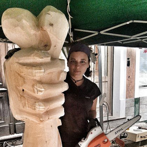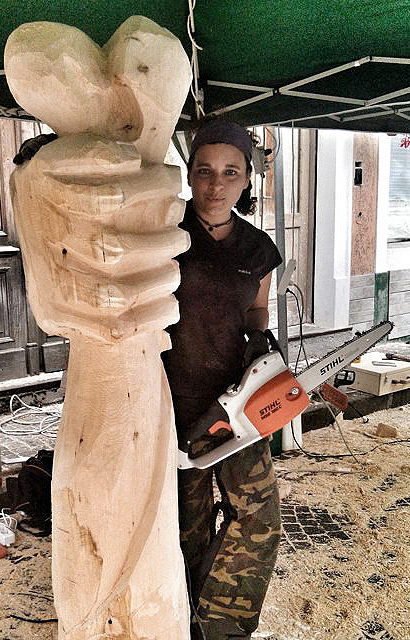 She is flying in with Day of the Dead goodies in her luggage because she wants to have fun with the locals at Hallowe’en—but she is also packing her trusty electric Stihl chainsaw to get seriously busy over ten fierce days of wood sculpting.