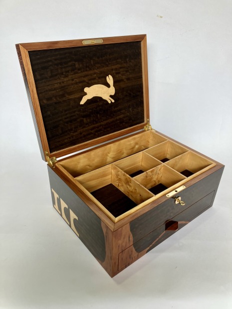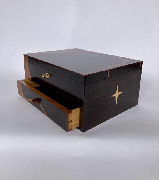 Heirloom box in Fumed Eucalyptus, Birdseye Blackwood and Birdseye Maple