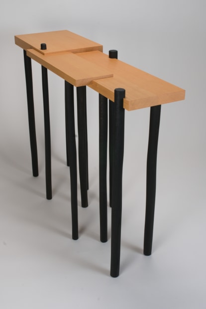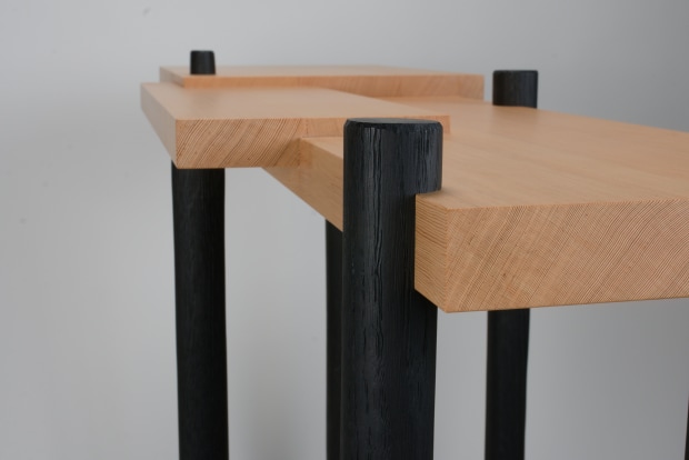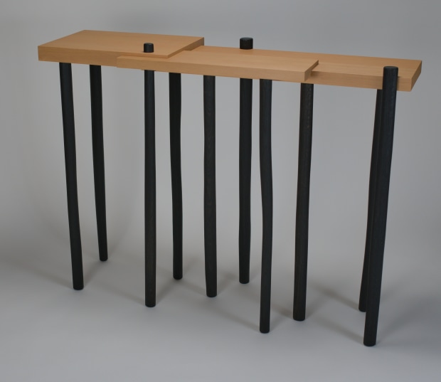 During the summer of 2024 a wildfire complex converged on the town of Jasper, Alberta, Canada. Approximated a third of the towns structures were lost and 32 700 hectares of forest were burnt. Jasper is approximately 300km from the town where I live, but we share a kinship in that we are both small towns set in a valley among mountains, surrounded by large forested wilderness parks and have a tourism based economy. As such, seeing the devastation of the fire hit very close to home for me and the rest of the community. This table came about as a result of seeing the images of the aftermath of the fire and reflecting on the impacts. Naturally after witnessing that destruction, it seemed appropriate to make this piece from left over wood and off-cuts as a form of rebirth and renewal.