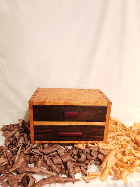 Giuseppe Deepak Benti, Hope: a two drawers dovetail box made with hand tools only and hardwoods. (ART & OBJECTS 2025)