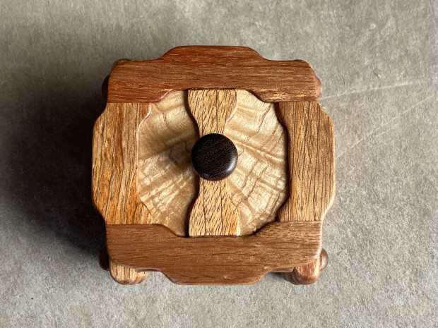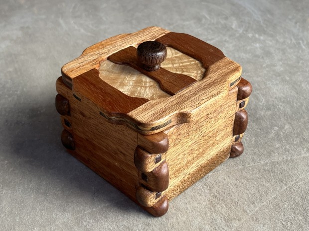 When my Grandfather gave me an old, broken Mahogany table, I knew I needed to recycle it and build a Greene and Greene style box with it. This piece is an homage to the Greene brothers' work, with a little nod to their Japanese influence in the Palownia I used for the Lid panels.