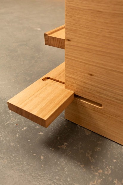 Kumi Sofa Named after the Japanese word "kumi" to assemble, to join. The Kumi Sofa is a piece that grew out of a desire to create something simple, functional, and lasting. Made from solid Tasmanian oak, I chose this timber for its warmth and character. Each piece is hand finished to bring out the natural grain, allowing the wood to tell its own story. I wanted the design to feel grounded and relaxed, inspired by the low-sitting furniture traditions of Japan. The sofa is built to sit close to the floor, encouraging a sense of calm and presence. The clean lines and minimalist form are a nod to the balance of function and simplicity, while the exposed joinery reflects the craftsmanship behind every connection. The back of the sofa acts as an open shelf, designed to be seen and used, whether for holding books, records, or plants. It’s part of my ongoing exploration into furniture that does more than just sit there—it offers practical, everyday solutions, without losing its aesthetic value. For me, ease of assembly was an important consideration. Using sliding joints and threaded inserts, I made sure it could be put together easily, even in smaller spaces or apartments where accessibility matters. It’s an alternative to flat-pack furniture, easy to assemble, but with real craftsmanship and a focus on longevity. The sliding joins are a take on the traditional cross lap join, with an additional rebate that houses the material so there’s minimal movement and twist. The upholstery is inspired by vintage textiles, chosen for its texture and warmth. The cushions are flexible, allowing you to move them around depending on how you want to use the sofa, whether it’s for lounging, sitting upright, or even turning it into a daybed for guests. The Kumi Sofa is a piece that’s meant to be used, not just admired. It’s built to fit into your life, offering comfort, versatility, and a quiet presence. For me, it’s more than just a sofa, it’s a reflection of the care and thought that went into making something that will last, both in design and in function.