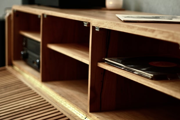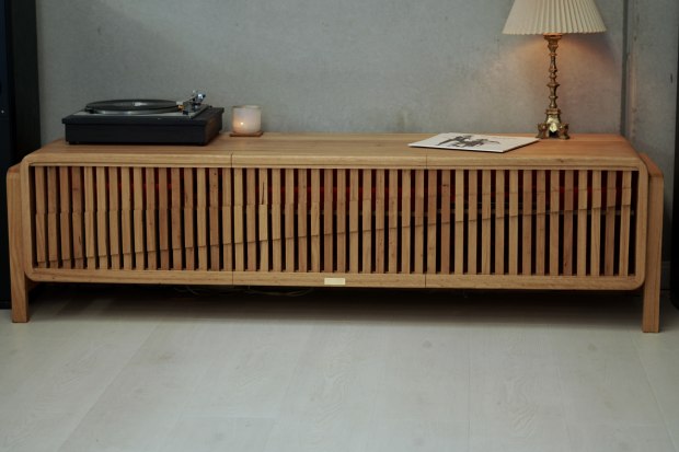 A sleek lowrider piece that encourages guests to gather around and listen to music. The batons on the front were designed to look as if the volume was being turned up on the front doors while the low stance allows for easy cable tidy management. A beautiful piece that will be admired for generations to come.