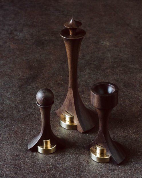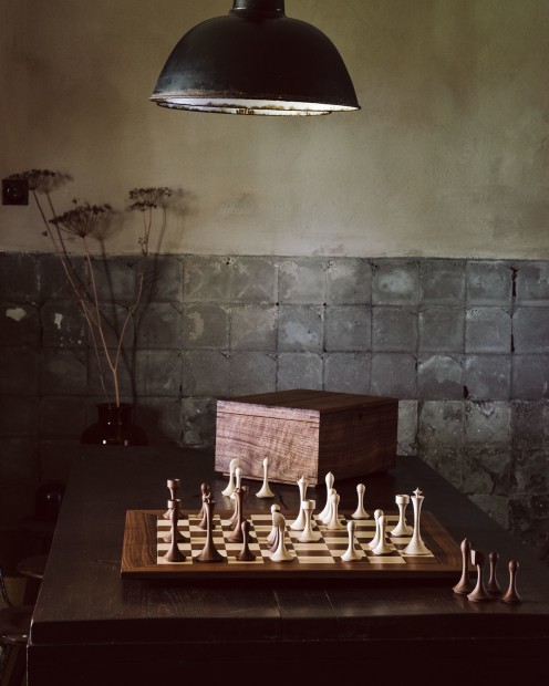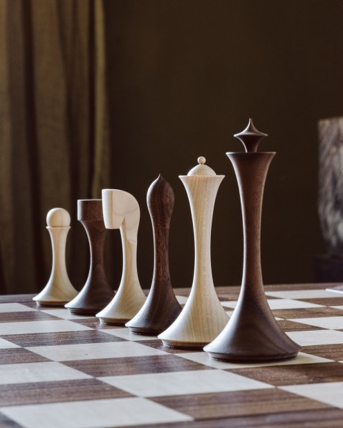 As a passionate chess enthusiast, I have carefully studied the requirements of a tournament chess set, ensuring that all dimensions comply with USCF regulations. The king stands 114 mm (4.5 inches), the largest permitted tournament size, and the set includes two extra queens for pawn promotion. The entire chess set is made from a single plank of maple and a single plank of walnut. I use only traditional woodturning tools and techniques to craft these chess pieces. This approach allows me to shape graceful curves and refine even the finest details with precision. The knight’s head is entirely carved by hand. To enhance stability and balance, I developed a dual-weighted system with custom brass inserts. This ensures the pieces remain stable during play and provides a refined, high-quality feel in the hand. The storage system includes two inlays—one for white, one for black—where each piece rests securely in its custom-shaped recess. The inlays fit neatly into a bespoke wooden box, designed for both protection and elegance. The companion chessboard, with 60 × 60 mm squares, perfectly matches the pieces and meets USCF standards. Built from robust veneer layers, it combines warp-free stability with the appearance of solid wood. A beveled underside frame creates an elegant floating effect and makes the board easy to lift. "Masterpieces" are the result of years of design refinement and pure craftsmanship—created to be admired, played, and treasured for generations.