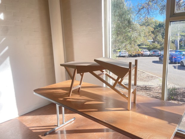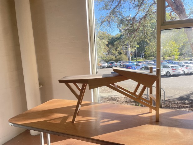 This table was designed and produced as a part of my design degree at the ANU. A meditation on Modernist forms, and iterative design, the piece was developed first from a series of 100 drawings. These wide ranging forms were then refined into this singular design. Made from hand-cut Tassie Oak the work is both functional and sculptural, designed to elevate a domestic environment.