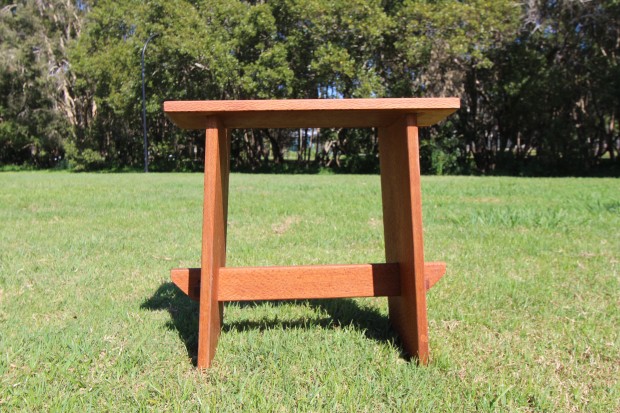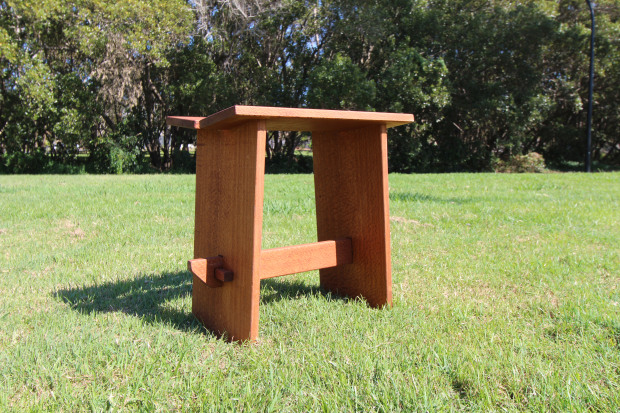 This stool is crafted entirely from recycled timbers. The main structure was salvaged from a vintage silky oak dresser that was severely damaged during the 2025 “Not-Cyclone-Cyclone” in Brisbane, while the butterfly inlays are French oak, repurposed from a decommissioned wine barrel. All joinery was hand-cut, using traditional techniques of glue and tenons to create a strong, lasting construction without reliance on modern fasteners. Designed as a true workman’s stool, it is built at the ideal height for tasks such as chiselling at a bench or sorting materials on the floor. Sturdy yet comfortable, it balances practicality with elegance. The design draws inspiration from modern Japanese woodworking and philosophy, which holds that functional objects can—and should—also embody beauty. Even in the workshop, where utility is paramount, this stool proves that craftsmanship and aesthetics can coexist seamlessly.