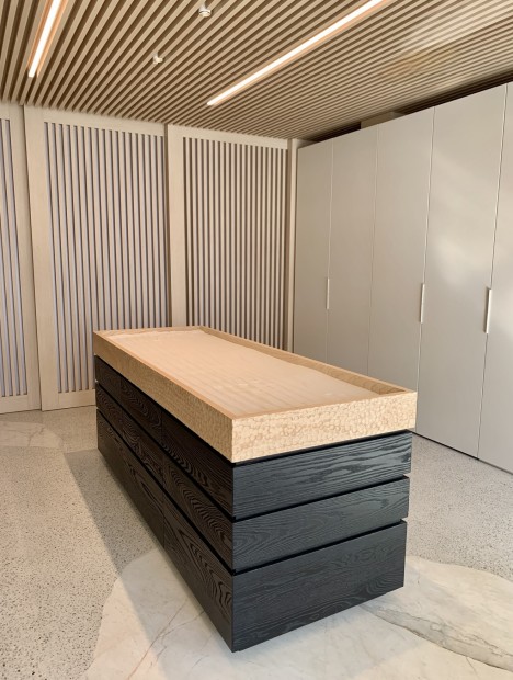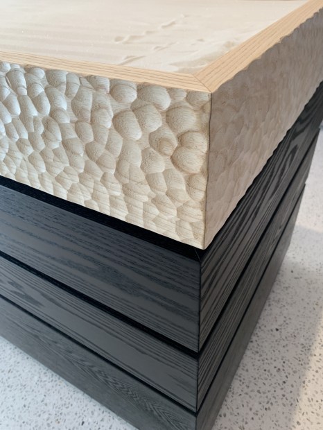 Maker’s Statement – Wood Review Maker of the Year Submission This centerpiece was designed and crafted for a high-end showroom with the brief to create the atmosphere of a Japanese-style penthouse. The piece draws on traditional Japanese timber techniques while reinterpreting them in a contemporary form. The base is constructed from solid oak, finished using the Shou Sugi Ban (Yakisugi) method, where the surface of the timber is charred to achieve a deep, textural black that enhances durability and provides a striking contrast. The top is crafted from solid white ash, meticulously hand-finished with the Naguri technique, where a rhythmic, scalloped texture is carved across the surface to catch the light and reveal the natural beauty of the timber. Together, these contrasting techniques—one dark and burnt, the other light and hand-textured—embody the balance of tradition and modernity, calmness and strength. The piece functions as a central display unit while also standing as a sculptural work in its own right, elevating the interior and housing product discreetly within. Every element was hand-crafted, with careful attention to proportion, texture, and detail, to achieve a modern interpretation of traditional Japanese finishing methods. Designed and made by myself, this work represents my commitment to merging traditional craftsmanship with contemporary furniture design.