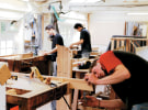 We don’t act as a manufacturer for other designers. We only build what I’ve also designed. We build our own products in batch runs. We’ve had orders of 20 or 30 tables at a time (coffee tables and meeting tables) for commercial projects. These projects are great for the business and great for training apprentices as well. If you have 100 legs to sand and detail, you get good at it. You also get efficient at it.